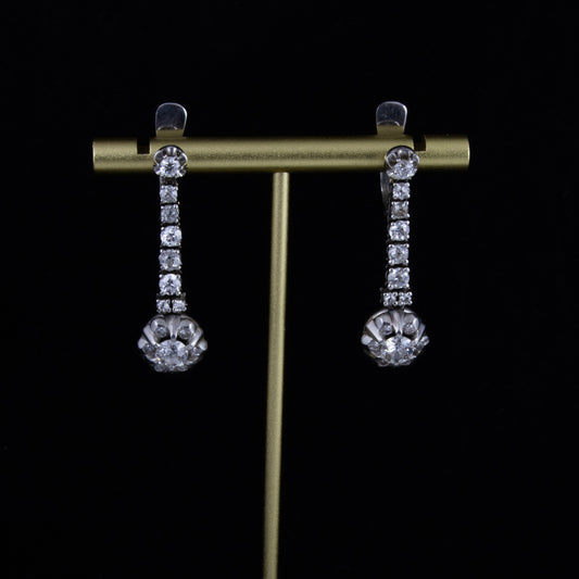 Pendientes años 40, en oro blanco con diamante central de 0,50 cts. estilo Holliwood.