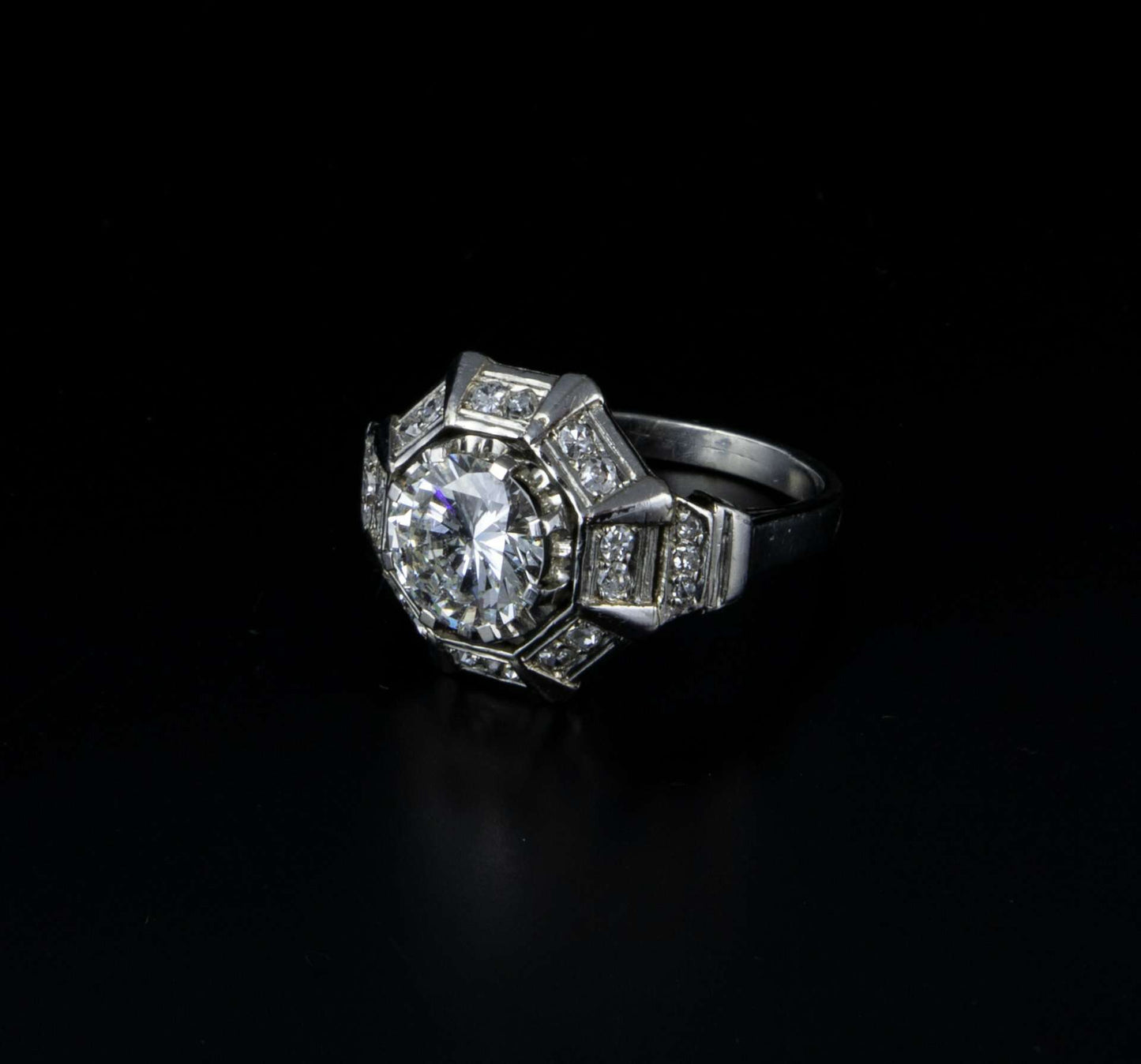Anillo de platino estilo Art Deco con brillante central 1,36 cts. H,SI1 talla moderna Marca Serraina.