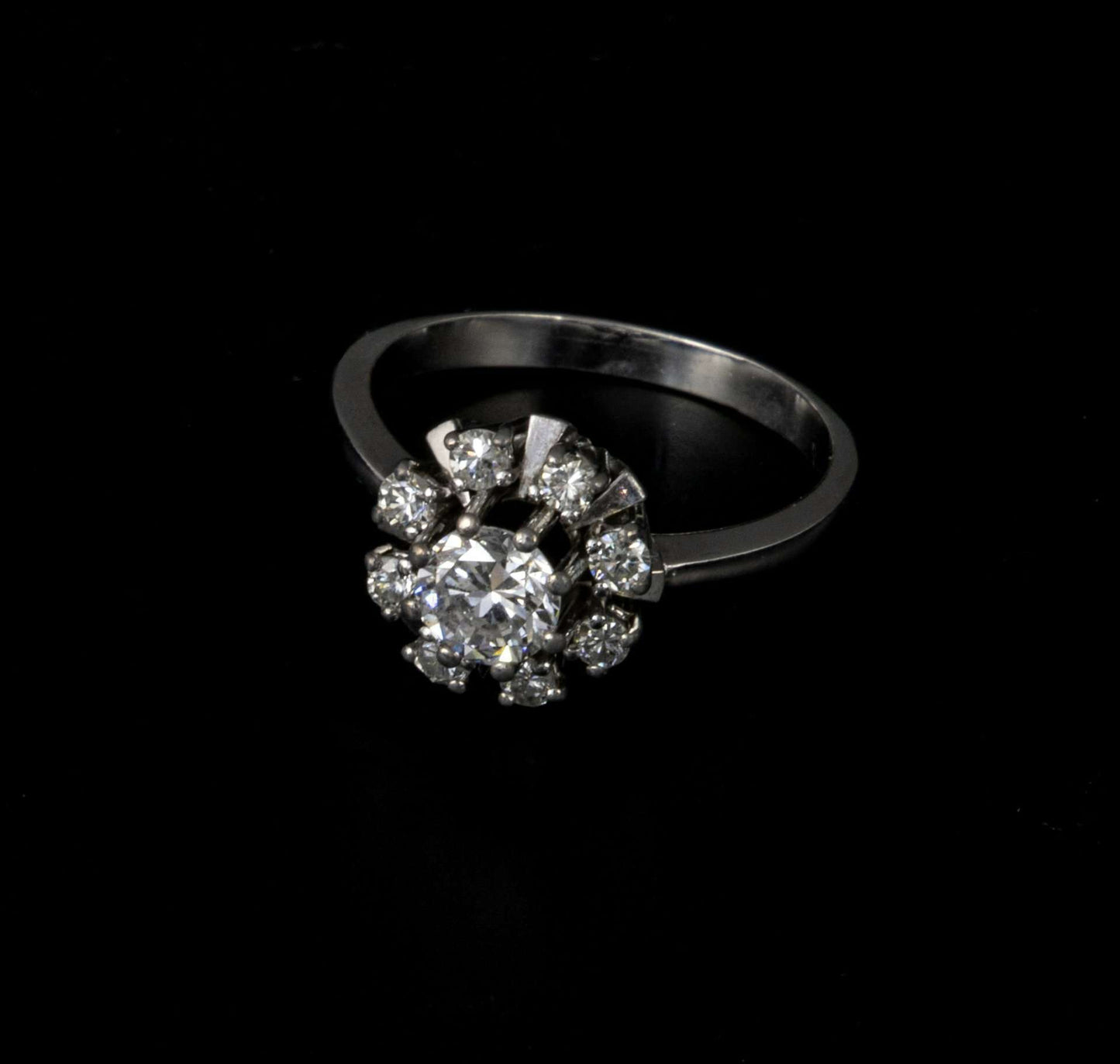 Anillo oro blanco rosetón con brillantes central 0,45 cts. y el resto 0,24 cts.