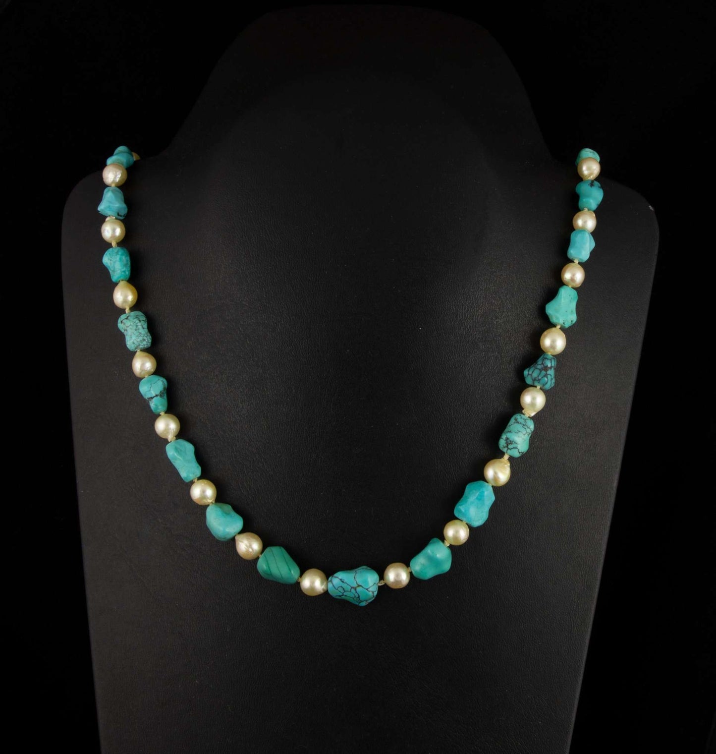Collar de perlas y turquesas con cierre en oro.