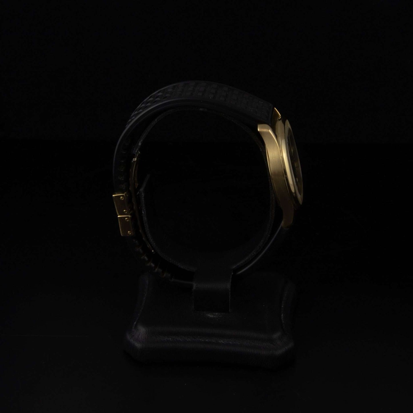El movimiento de cuarzo preciso garantiza una experiencia de relojería excepcional, mientras que la correa de caucho resistente al agua proporciona comodidad y durabilidad. Con detalles en dorado y números arábigos luminiscentes en la esfera, este reloj ofrece una legibilidad óptima en todo momento.