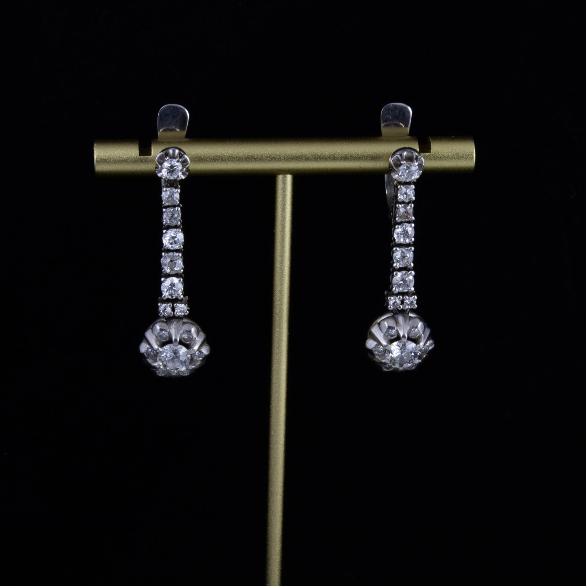 Pendientes años 40, en oro blanco con diamante central de 0,50 cts. estilo Holliwood.