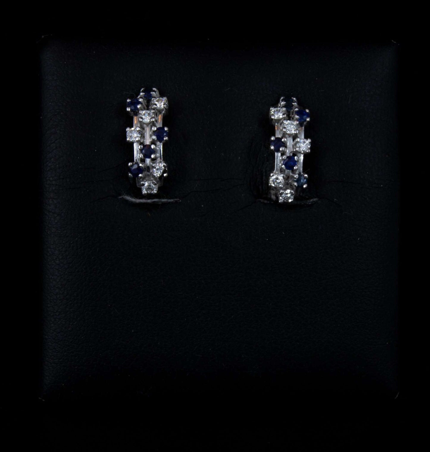 Pendientes oro blanco con brillante 0,10 cts. y zafiros 0,12.