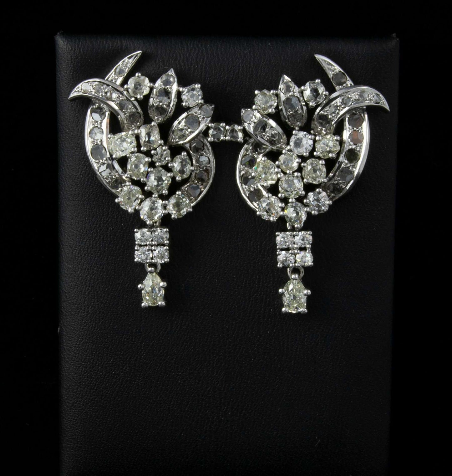 Pendientes oro blanco con brillantes y diamantes 2 cts. aprox.
