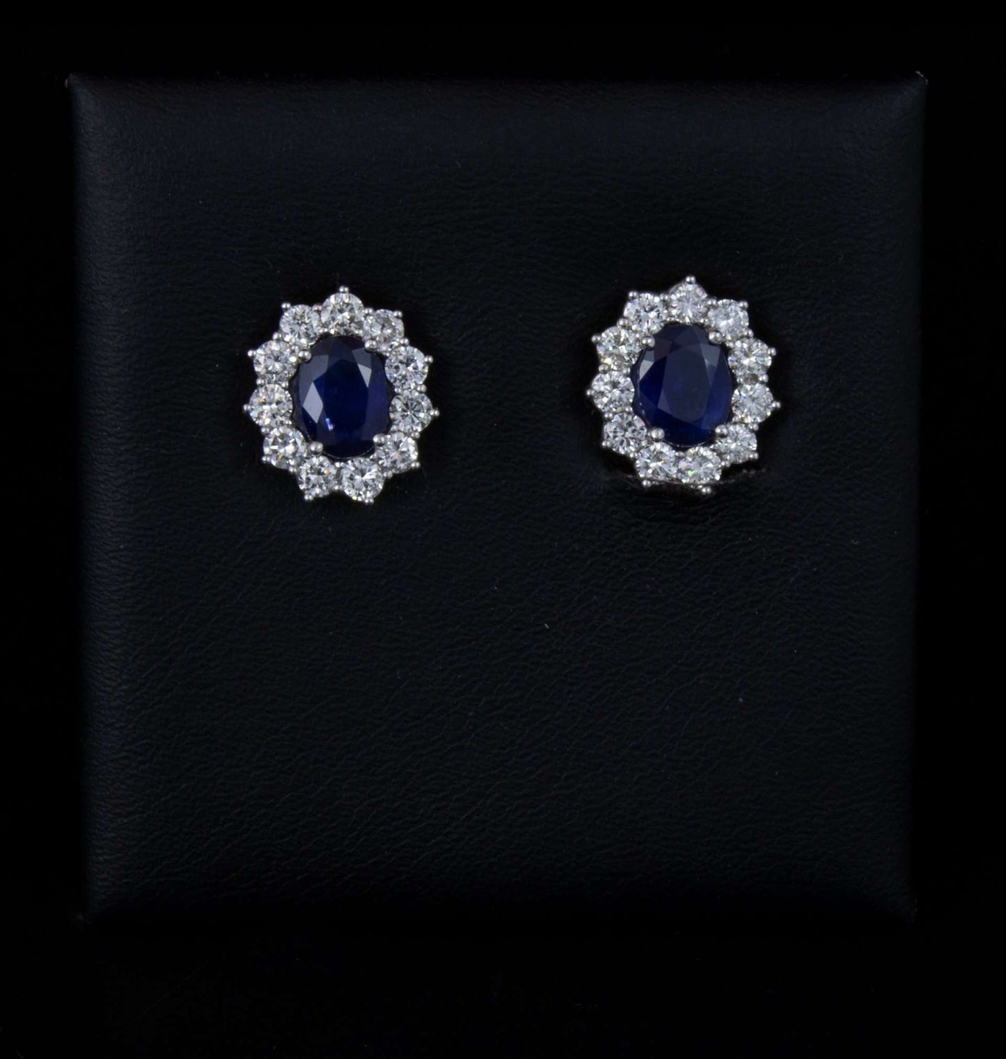 Pendientes rosetón zafiros 3,35 cts y brillantes 1,32.