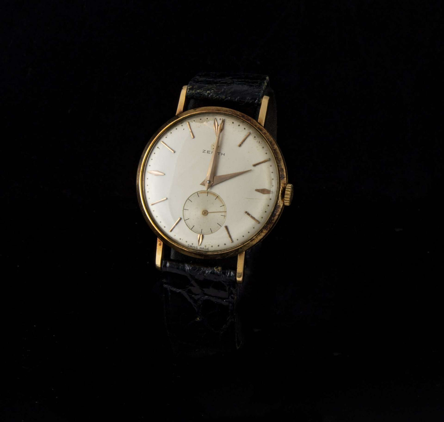 Reloj Zenith en oro con correa de piel.