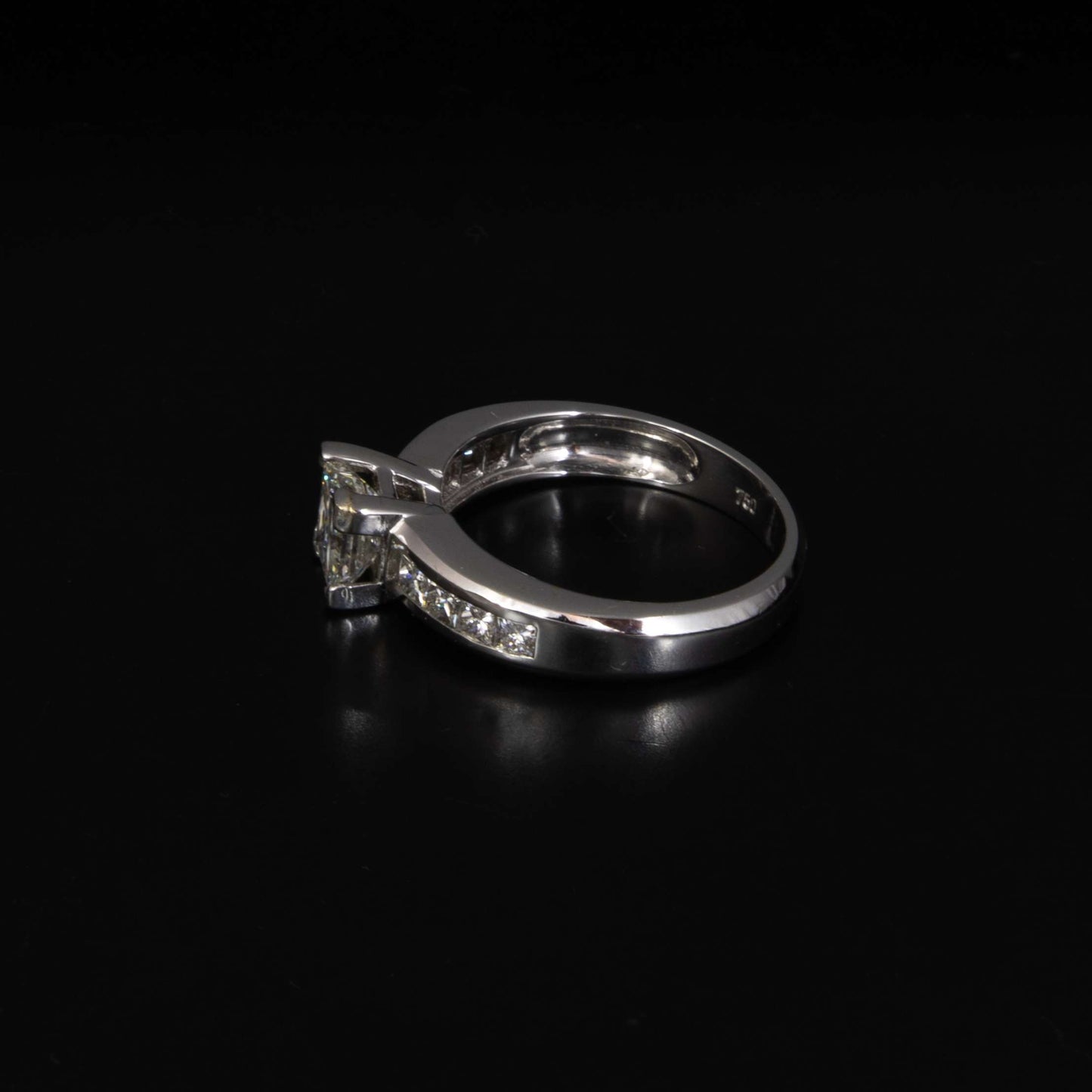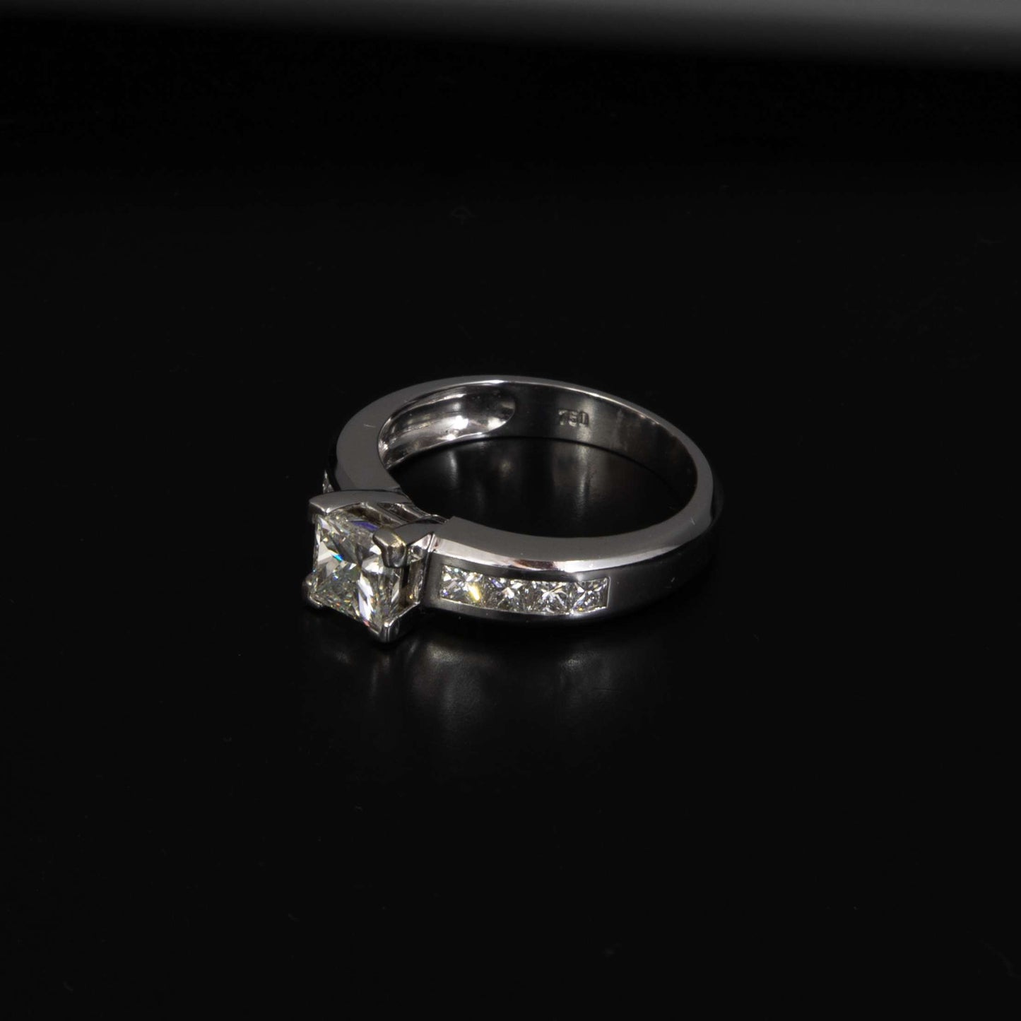 Solitario oro blanco VS1 H, diamante central talla princesa 1,01 cts. y brillantes 0,20 cts. aprox. Adjunta certificado.